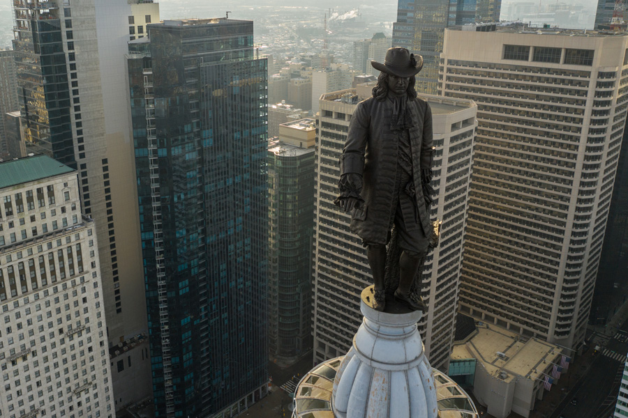 City Hall the largest municipal building in the country contains nearly 700 rooms and more than 250 sculptures including the famed 37-foot bronze statue of Penn the tallest atop any. One Liberty Place William Penn Philadelphia City Hall Philadelphia Phillies 2008 World Series Comcast Center office building Colony et des millions de livres en stock sur Amazonfr. The two iron workers upon the installation of the final and highest beam in the tower affixed a small William Penn figurine to the beam.