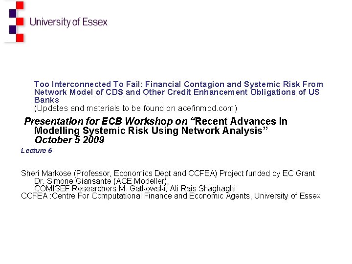 Too Interconnected To Fail Financial Contagion And Systemic